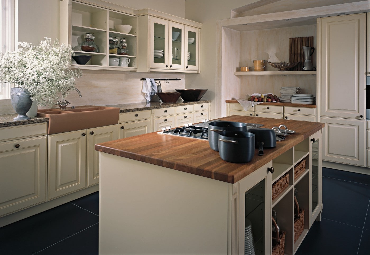 Traditional painted fronts mixed with wood, glass, open shelving and classic sinks if you have a period home that requires classic elegance then you won’t go far wrong with the Calvos-FS kitchen from Leicht German kitchens. The kitchen remains fully customisable so the quirks of some period houses hold no fears for us and we will ensure your kitchen is fitted perfectly so you get a fully functional beautifully fitted dream kitchen in your home.