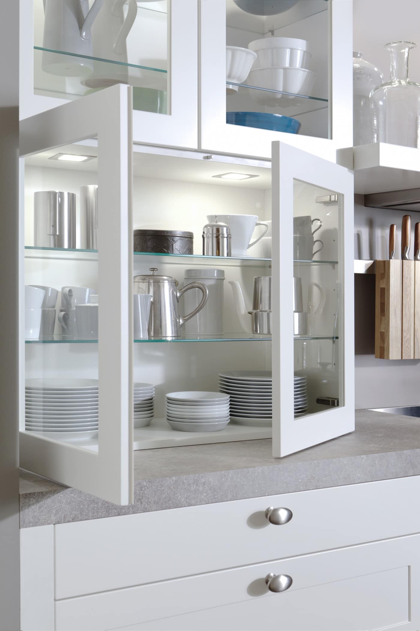 The frame size of 69mm is repeated in both of the glass cupboards and the corner posts. So if you want a beautifully made traditional kitchen with modern sleek lines which is available in all RAL standard colours