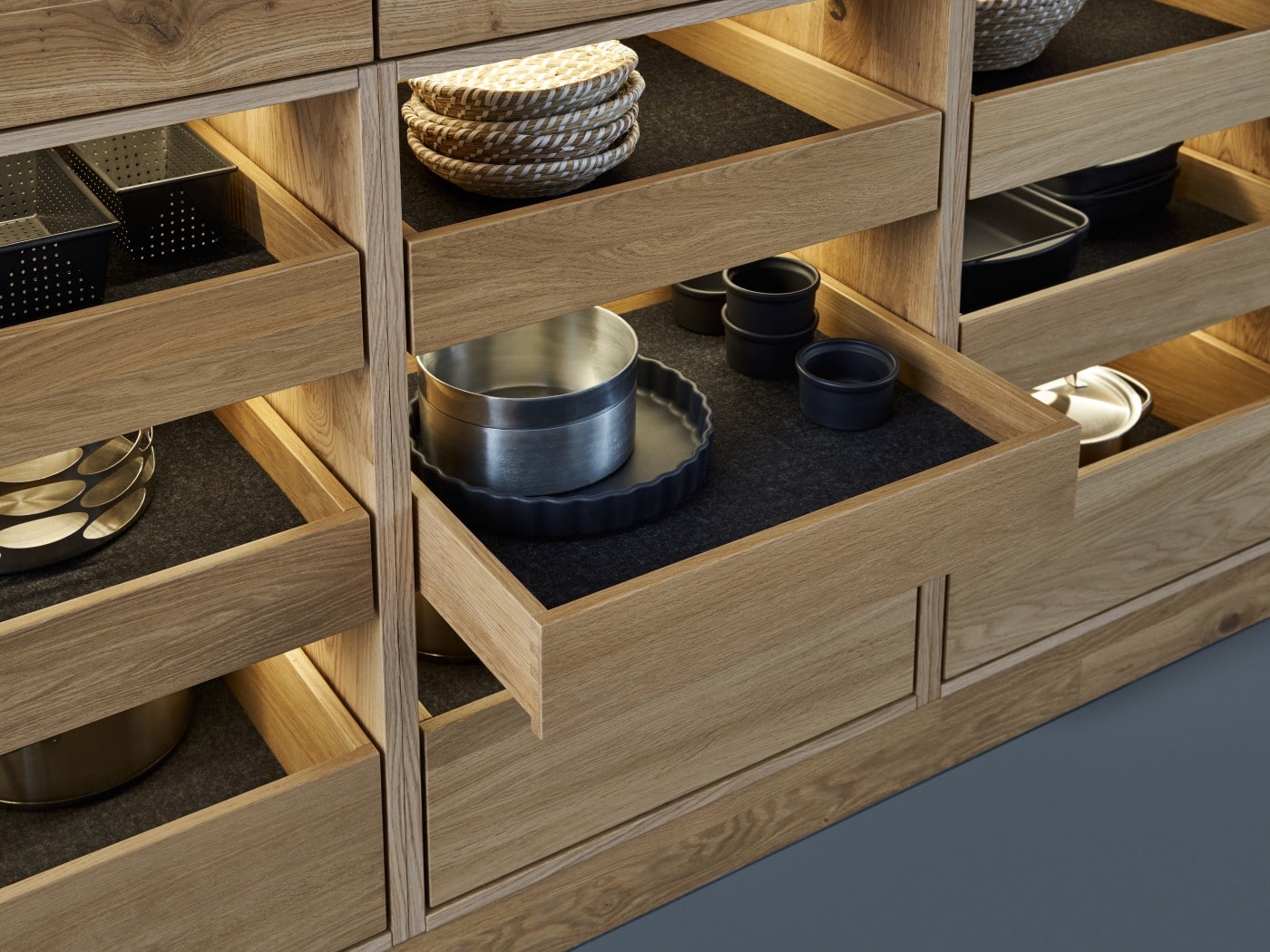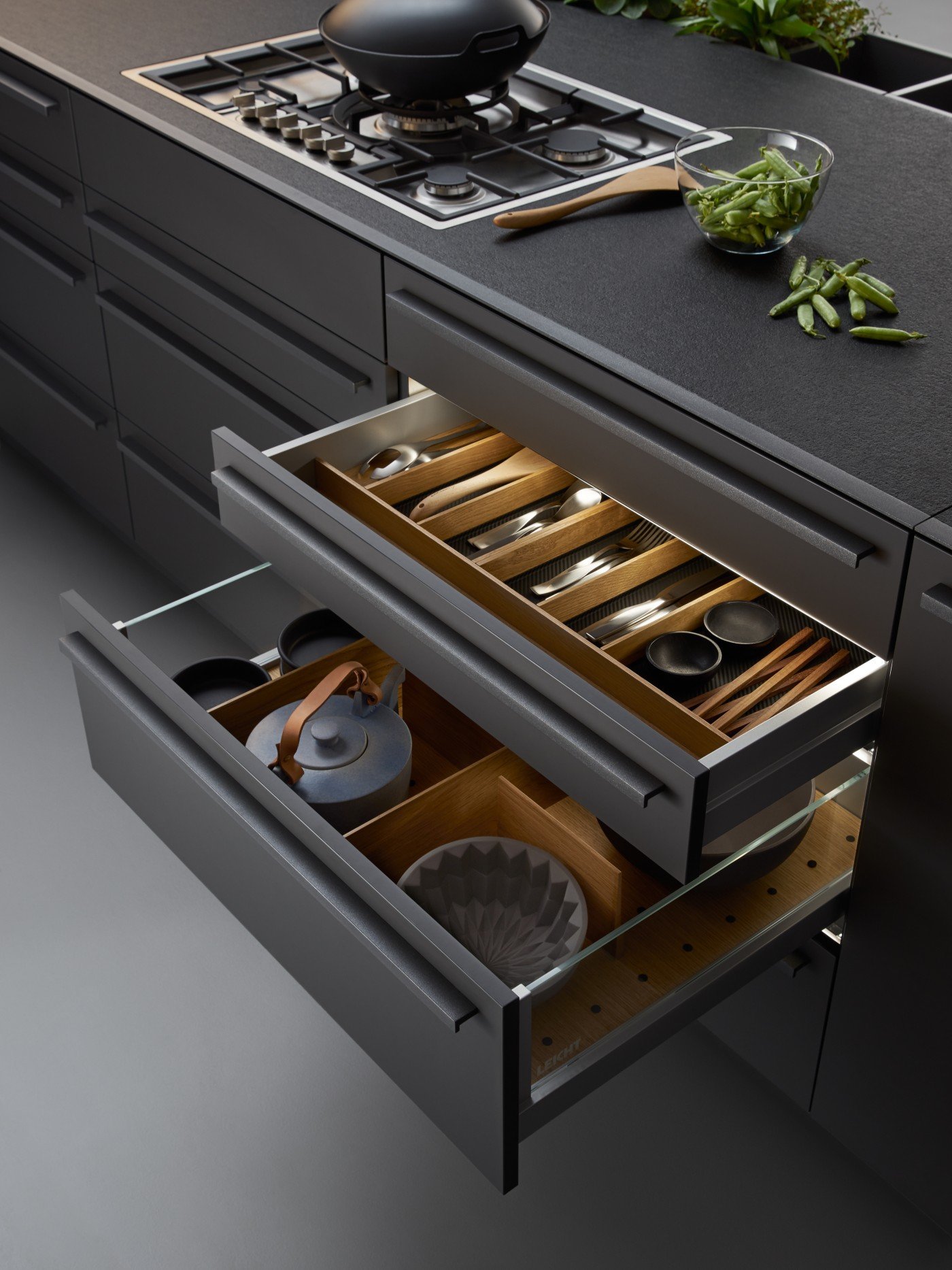 The Valais offers a seamless transition from worktop to fronts as the worktop has a totally flush finish with the fronts which not only helps with cleaning and maintenance but makes it look extremely chic and sleek.