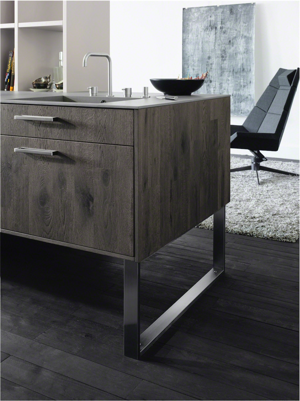 An authentic and elegant design that comes in three different styles that are all built with their own matching surround accessories. ‘Aged oak slate’, alongside ‘aged oak, natural’ and ‘aged oak, moor’ provide each kitchen with vertical colour matching grained veneer bars with staggered joints that enhance the sophisticated quality of the design.
