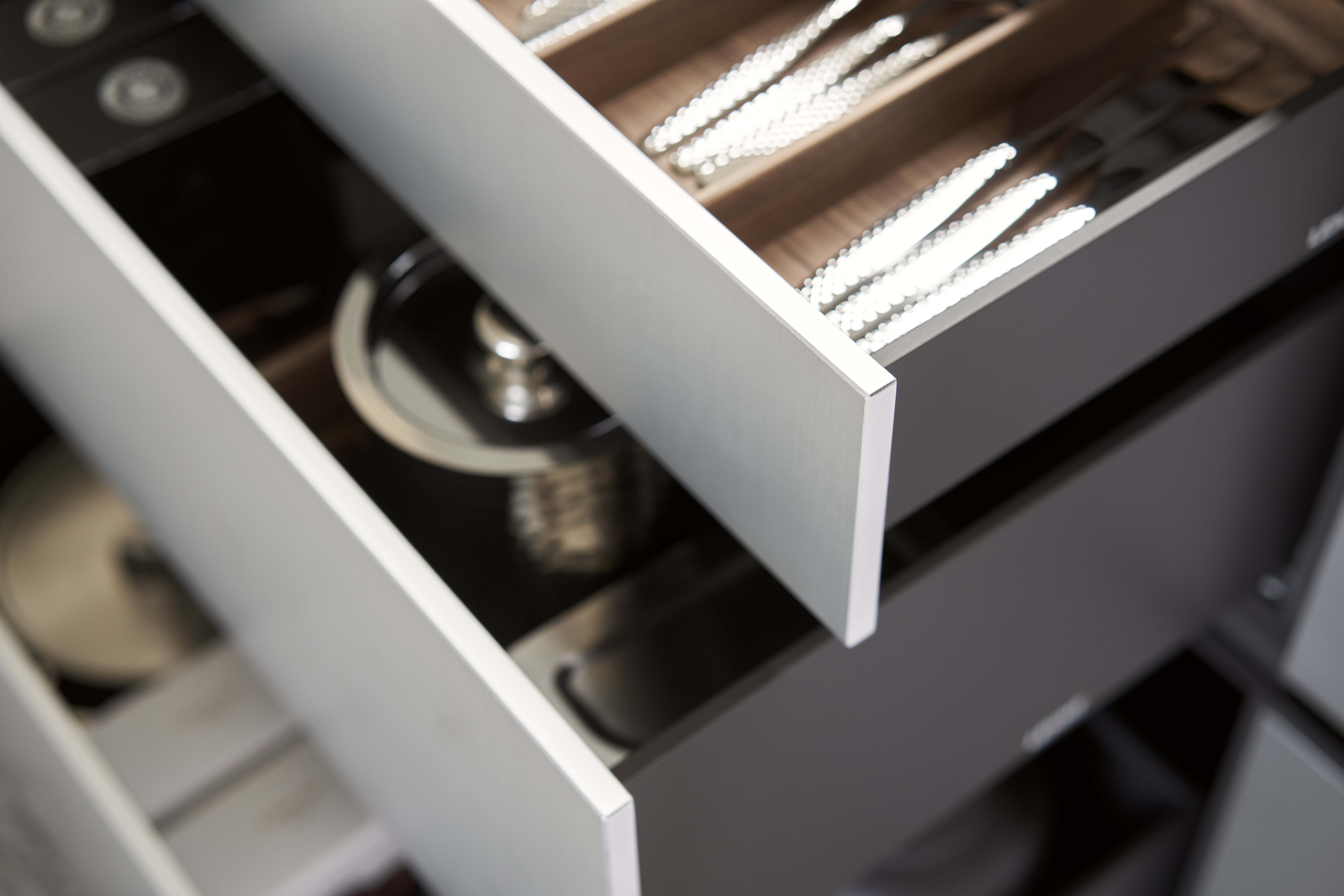 Contino 12 – a new, handleless kitchen front in a thickness of 12 mm and the finest manufacturing quality. Available either with a lacquer finish or in aluminium, the thin front rounds off different room designs with an elegant design language and architecturally clear lines. The new product has a filigree, shapely and elegant look, with which the architecture brand has stylistically expanded its aesthetic and technical competence in the design and implementation of handleless kitchens. The conscious reduction of materials maximises Contino 12’s elegant appearance in the kitchen living space.