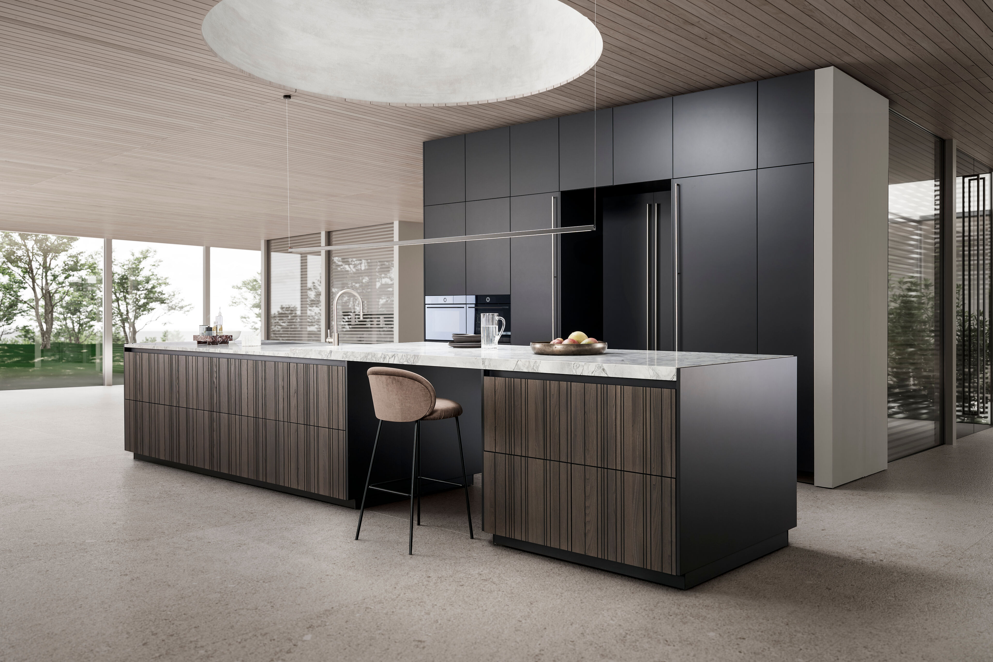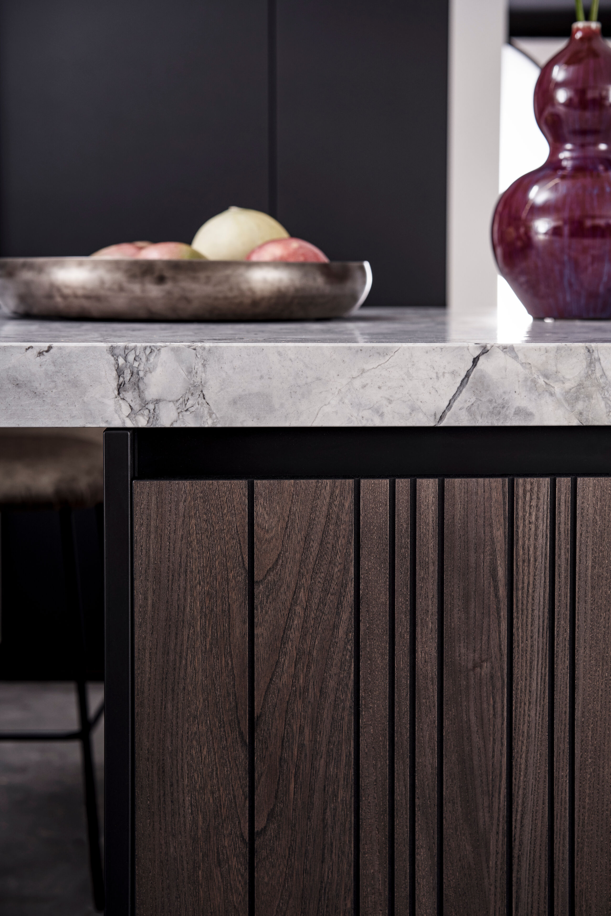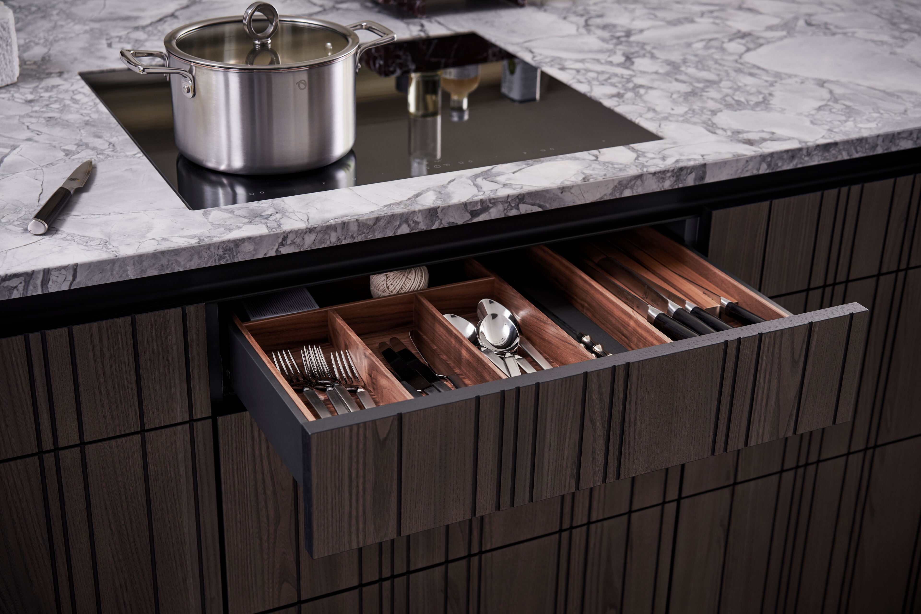 A furniture front that is more than just a front. The latest innovation consists of a veneer front with an exciting surface created by its vertical groove structure.