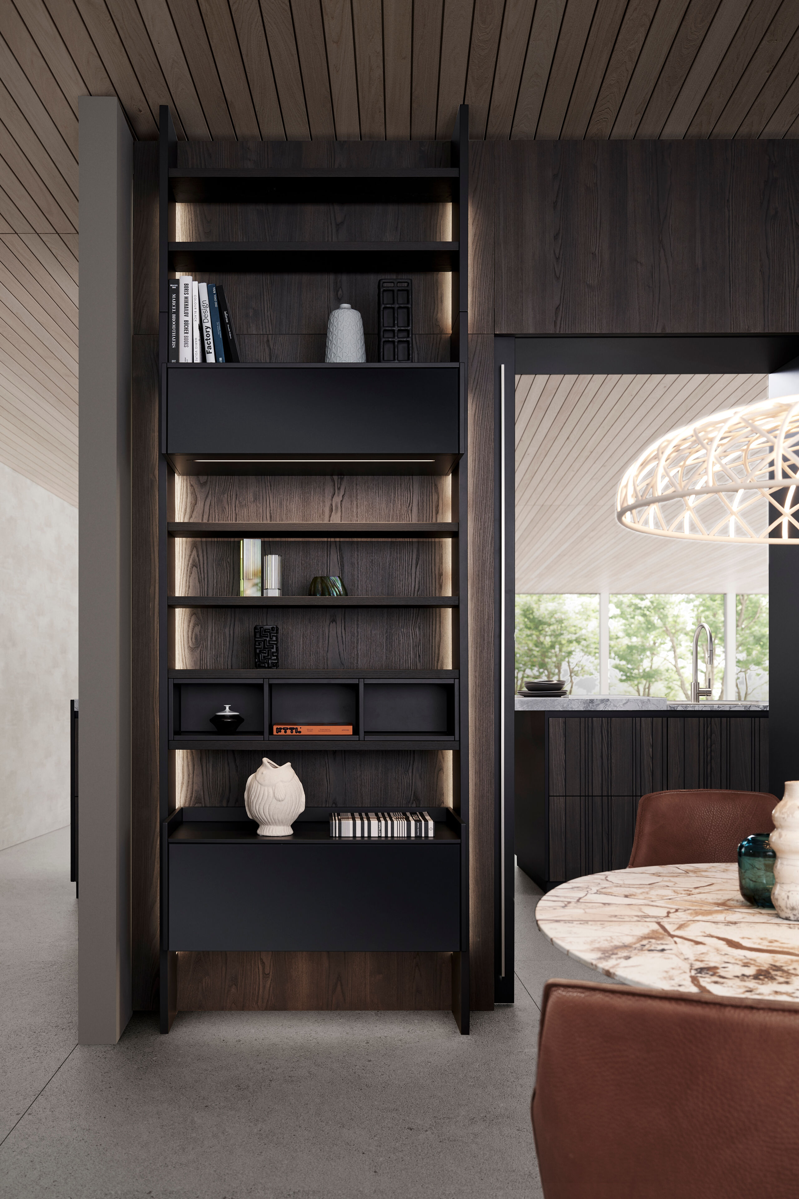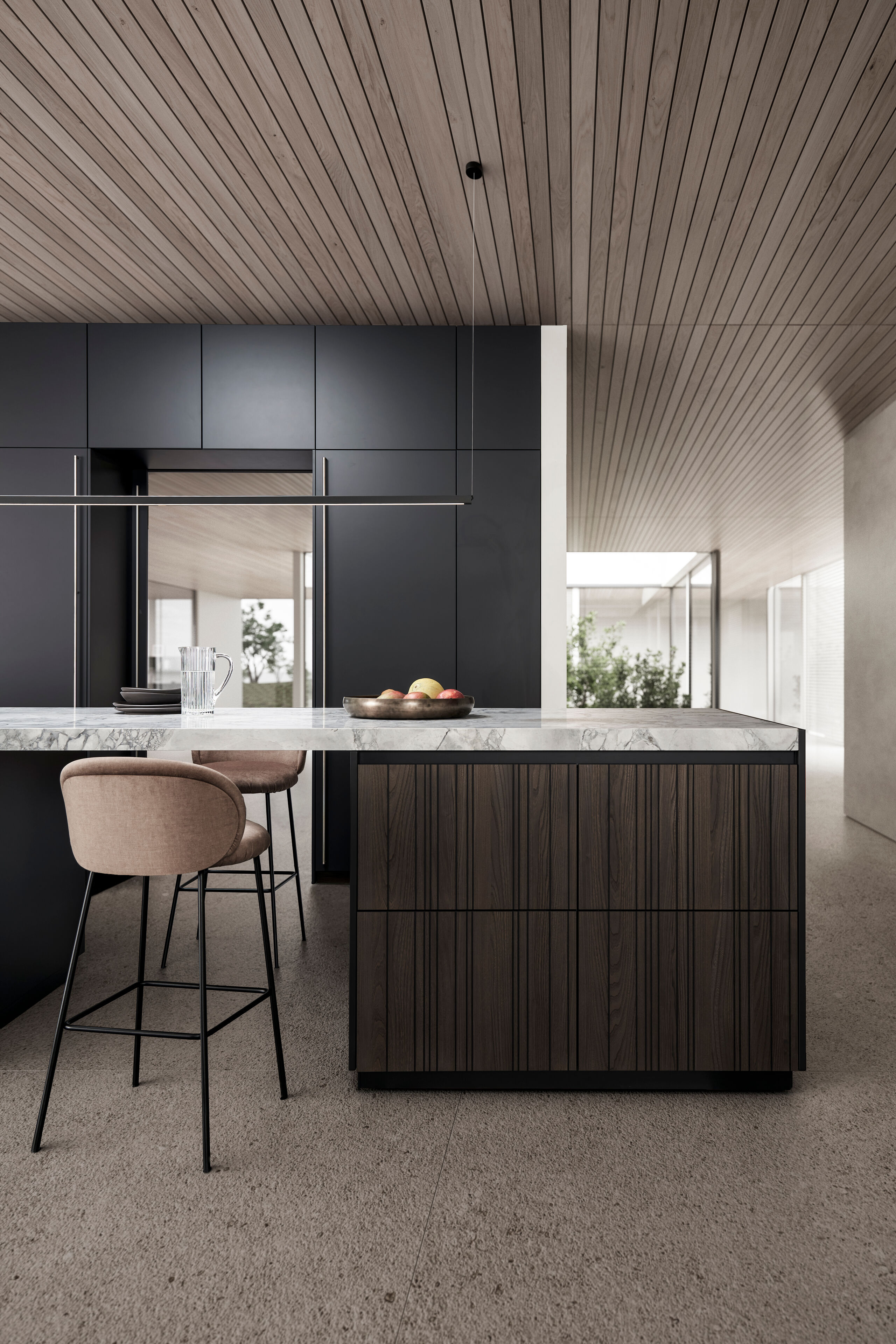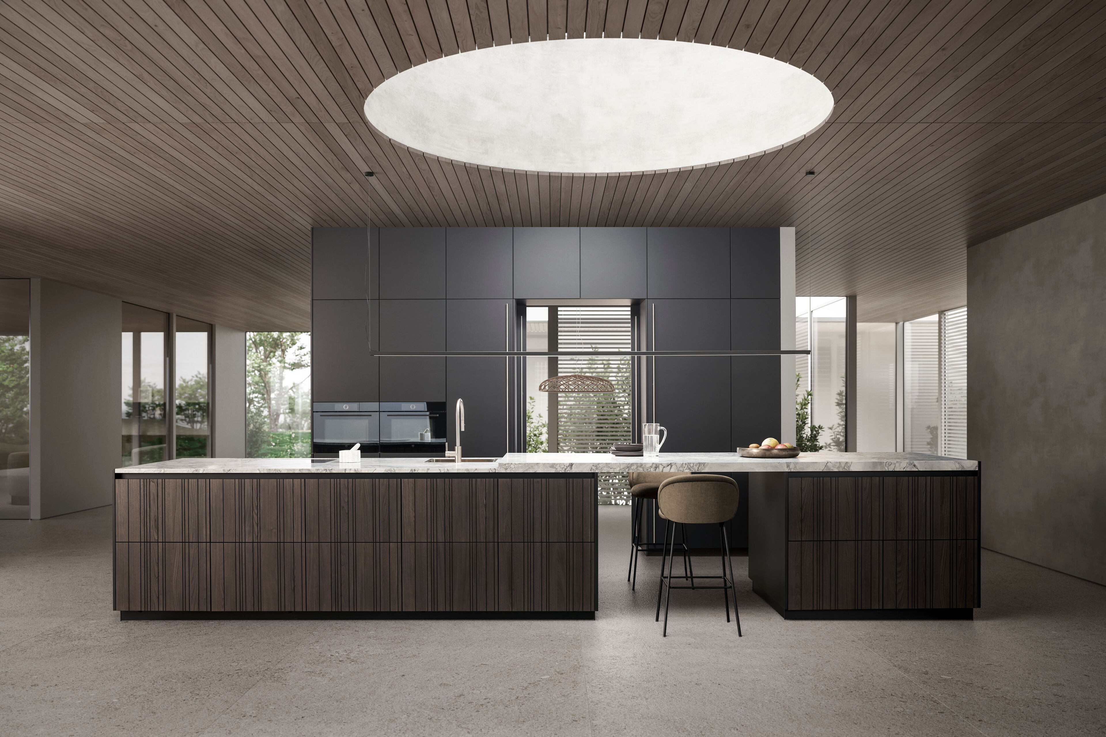 A furniture front that is more than just a front. The latest innovation consists of a veneer front with an exciting surface created by its vertical groove structure.