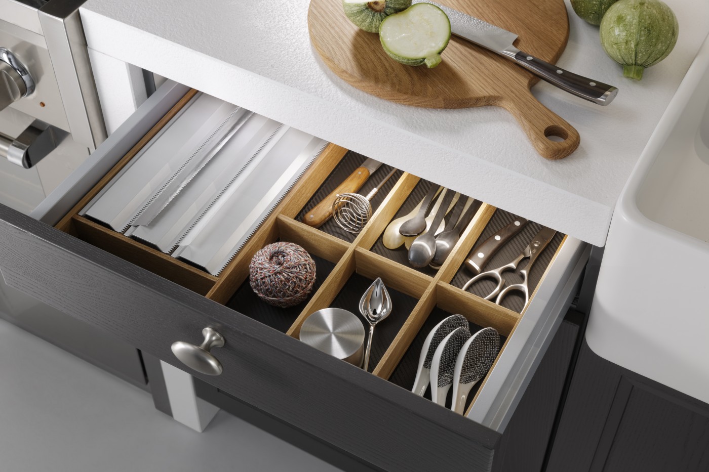 An organised kitchen is an efficient kitchen. Our great range of units and internal accessories will help you organise and arrange your kitchen so that you can enjoy using it with ease. A new kitchen is an opportunity for you to improve how you store and access your food, cutlery, utensils, tableware, cookware and small appliances. There’s a place for everything with our clever storage ideas.
