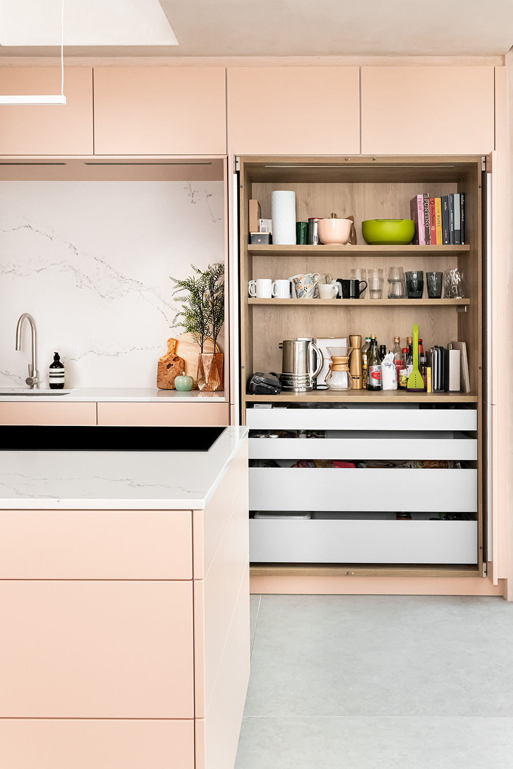 Colours are pure emotion – We always aim to plan kitchens which are in complete harmony with the personality of the individual environment of our clients.   In this kitchen we have used a beautiful hue from our Les Couleurs Le Corbusier range.