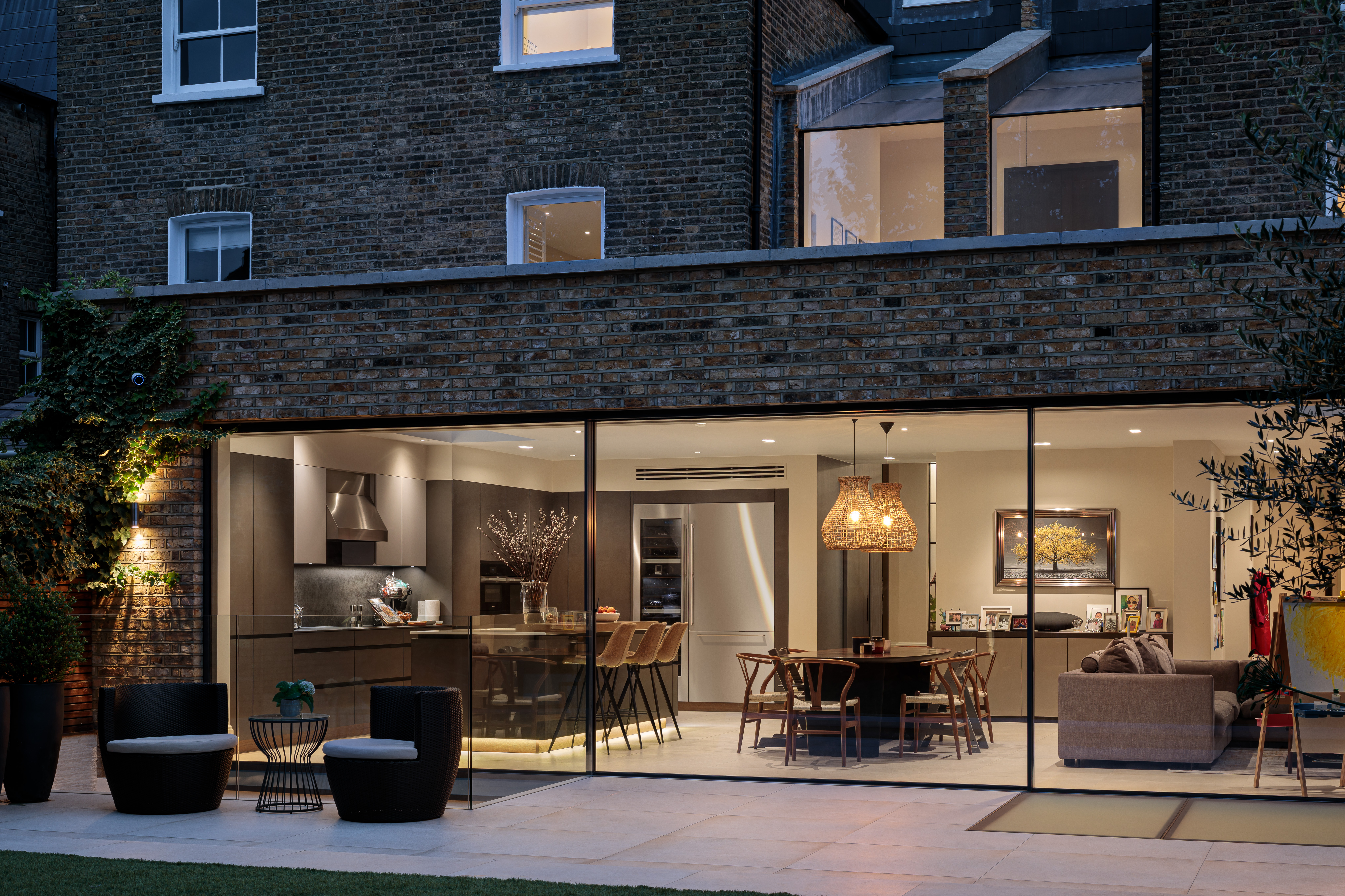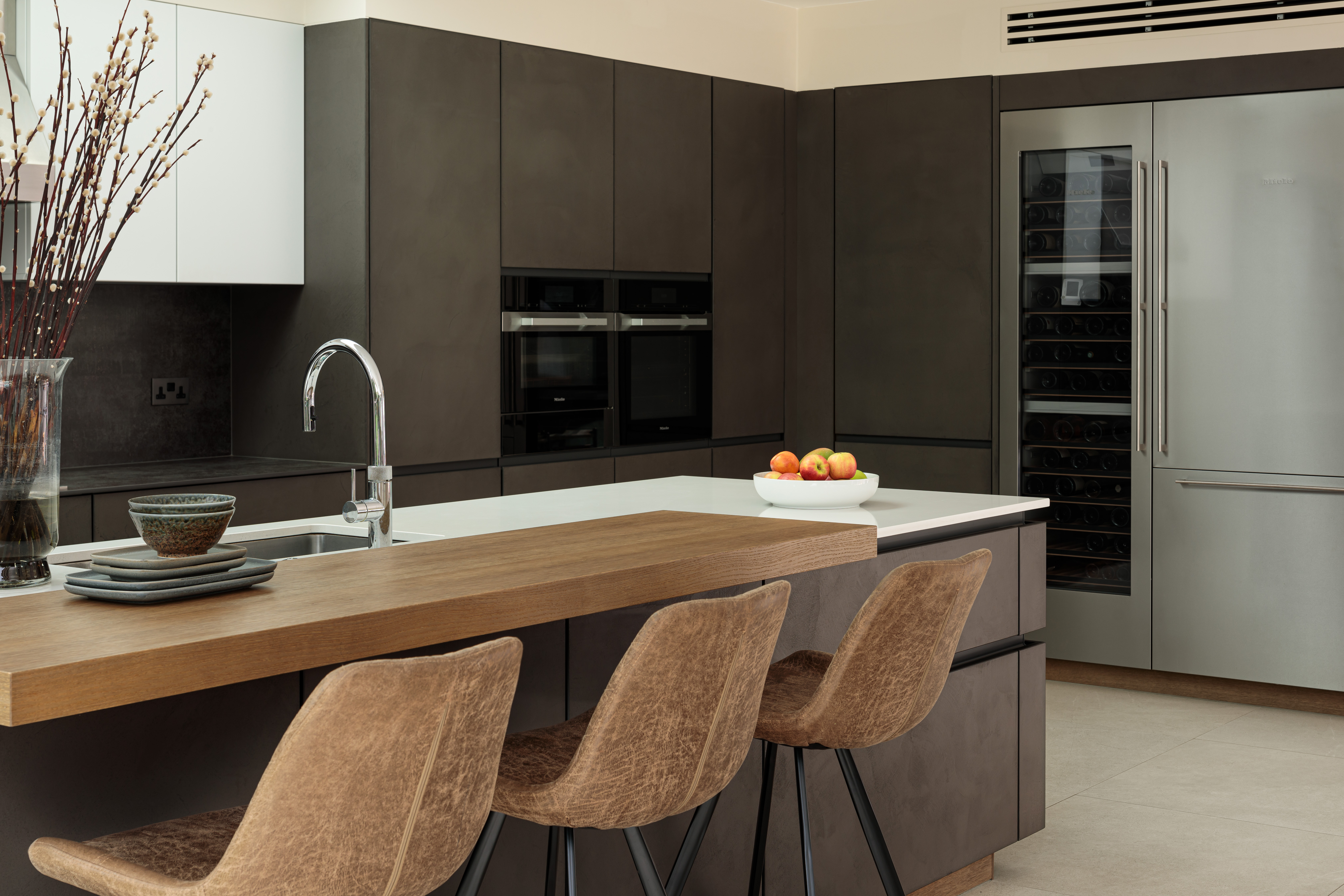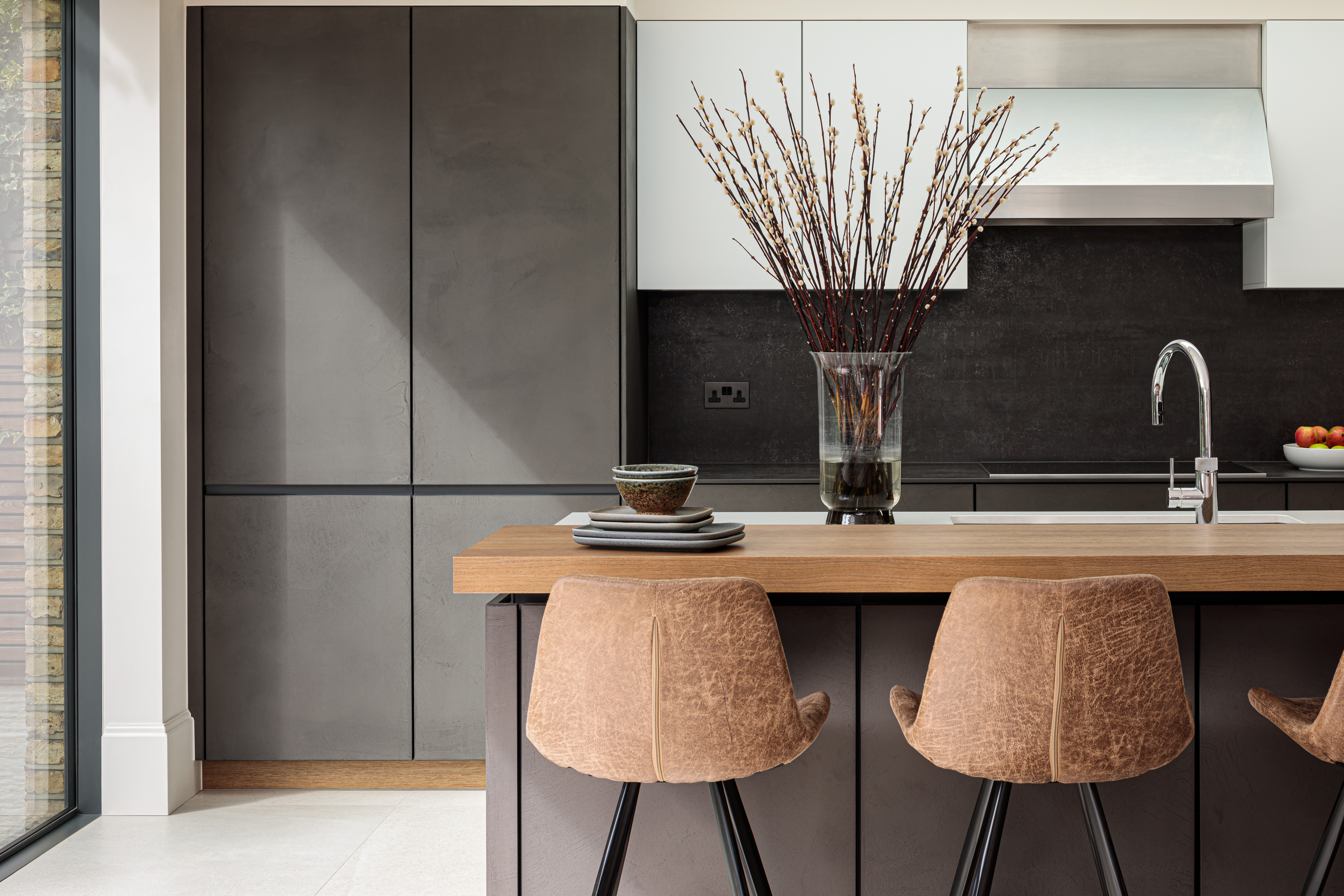 Worktop & Splashback: Neolith Iron Grey on hob run – Absolute White on the kitchen island