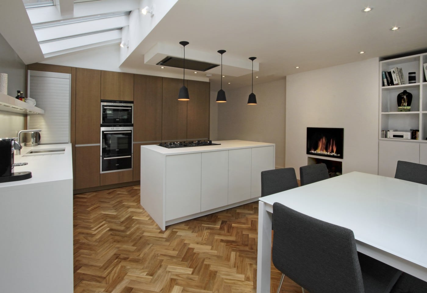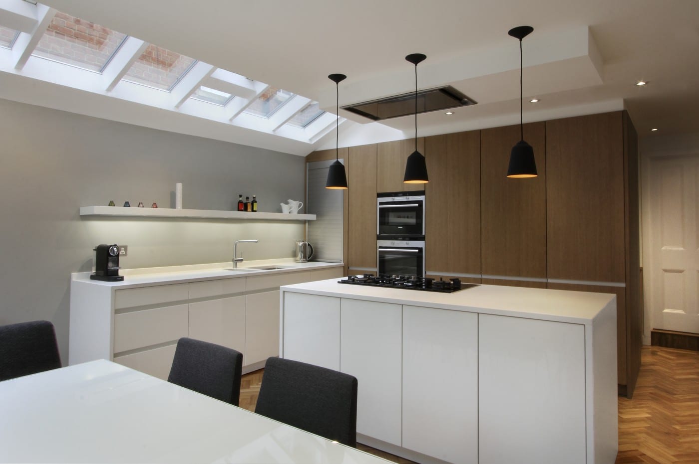 This copper oak kitchen design gives a warm and comforting feel to any kitchen. Enjoy dinner as a family with this spacious and creative way to make your house feel more like a home.