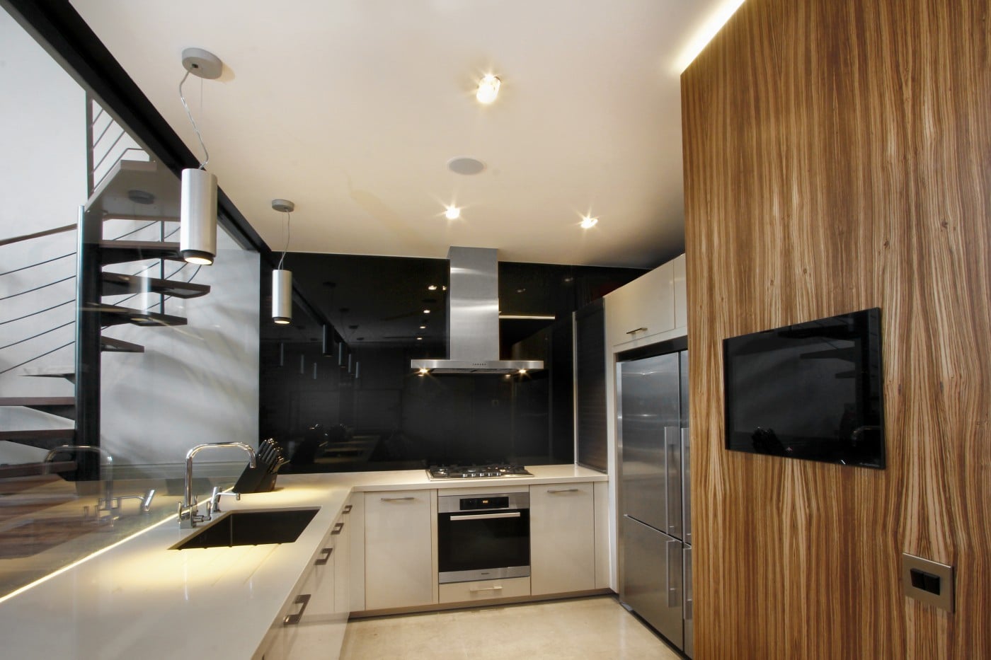 One of the ultimate modern kitchen designs for people who are looking to keep their home trendy. The soft lighting and contemporary furnishings bring kitchen design into the modern world.